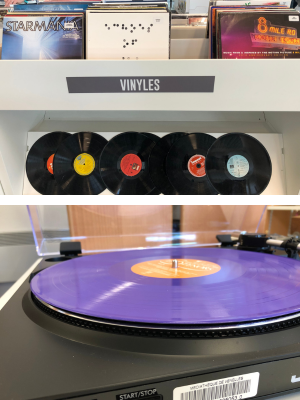 La médiathèque vous propose, en plus de sa sélection de disques, d'emprunter pour 15 jours une platine vinyle.